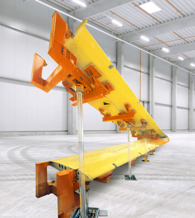 Les exigences de précision imposent l'absence de facteurs perturbateurs tels que les effets de broutement des vérins. Des forces de rappel très faibles apparaissent par exemple aux extrémités des ailes. Ces zones doivent cependant être déplacées à une vitesse atteignant 670 mm/s. Les ailes sont élevées jusqu'à 2,9 m au-dessus de la position de référence et abaissées jusqu'à 1,2 m en dessous. Mais les structures souples peuvent facilement présenter des oscillations parasites si le mouvement des pistons et des tiges de vérins hydrauliques n'est pas fluide. Les tolérances admises dans ce domaine se limitent à seulement 3 pour cent de la charge nominale des vérins. Dans la pratique, elles sont inférieures à 2 pour cent. Les oscillations parasites provoqueraient des écarts non recherchés et fausseraient les résultats. C'est pourquoi les essais relatifs à la structure des avions s'effectuent principalement avec des vérins Hänchen à joint flottant à fente annulaire breveté, dont le coefficient de frottement demeure constant indépendamment de la pression. Ces vérins possèdent un corps en acier qui se déforme par le biais d'un interstice d'étranglement et génère de ce fait une fente d'étanchéité sans contact de quelques centièmes de millimètres. Cette technologie requiert une précision de production de quelques µm pour éviter des fuites entraînant de grandes pertes hydrauliques. Les coûts de la série de vérins PZR sont environ 30 % inférieurs à ceux de vérins à guidage de tige de piston hydrostatique (PLZ). Car les vérins PZR présentent, en raison de leur frottement négligeable, une très haute précision de positionnement et de reproductibilité, sont exempts d'effets de broutement et se prêtent aussi bien à des mouvements extrêmement lents qu'extrêmement rapides. Le choix de vérins Hänchen a cependant aussi été dicté par la résistance. Rappelons à cet égard que les essais se déroulent 24 heures sur 24 7 jours sur 7.
